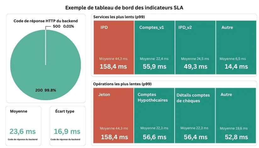 • SLI (indicateur de niveau de service) : performances réelles mesurées d’une API (par exemple, temps de réponse, disponibilité, taux d’erreur).
